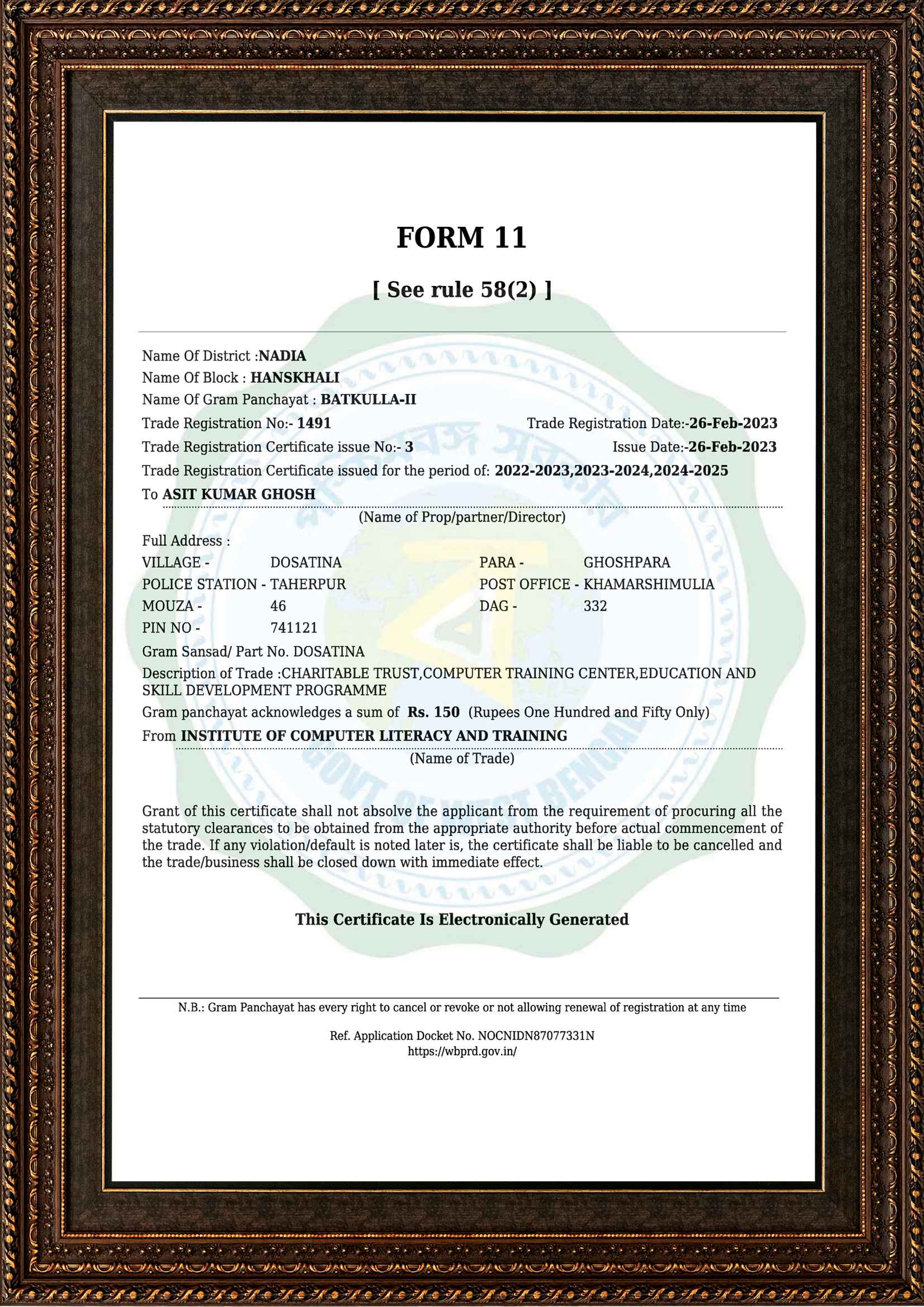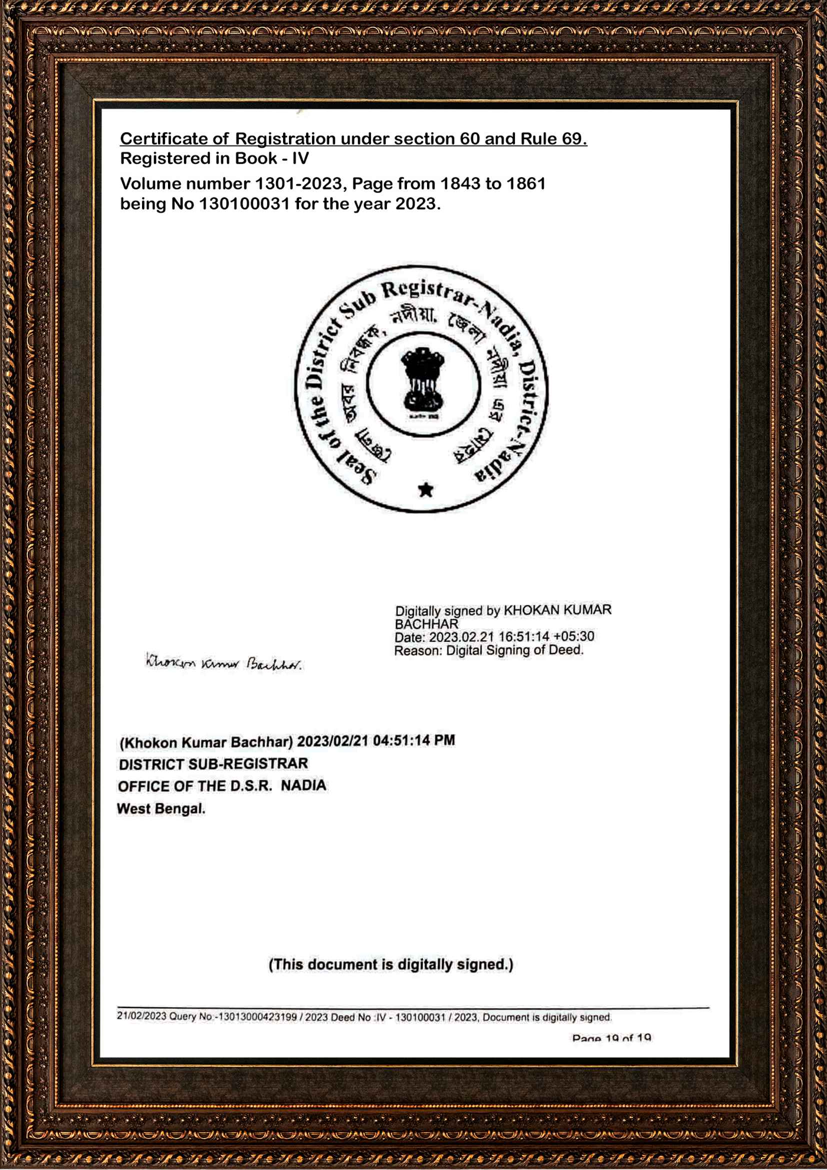 We are registered under Form 11 [See Rule 58(2)], Govt. of West Bengal.