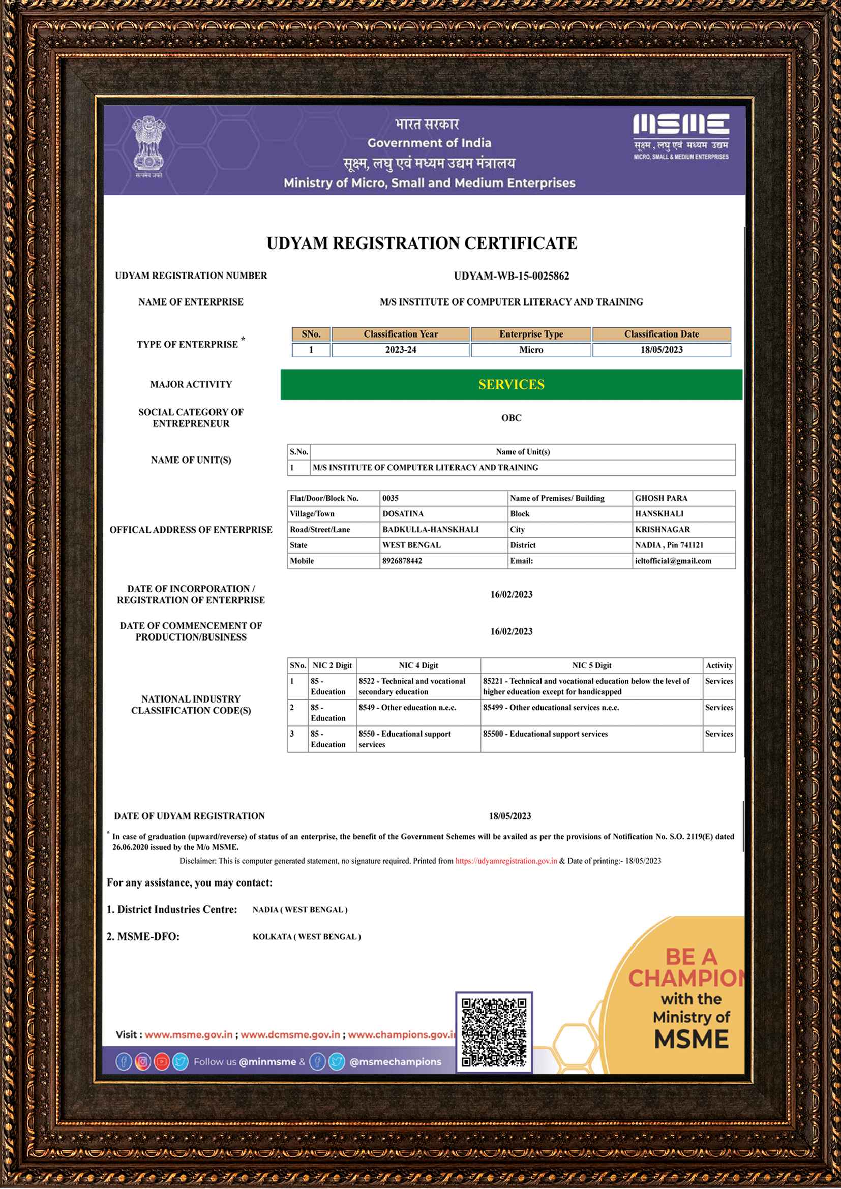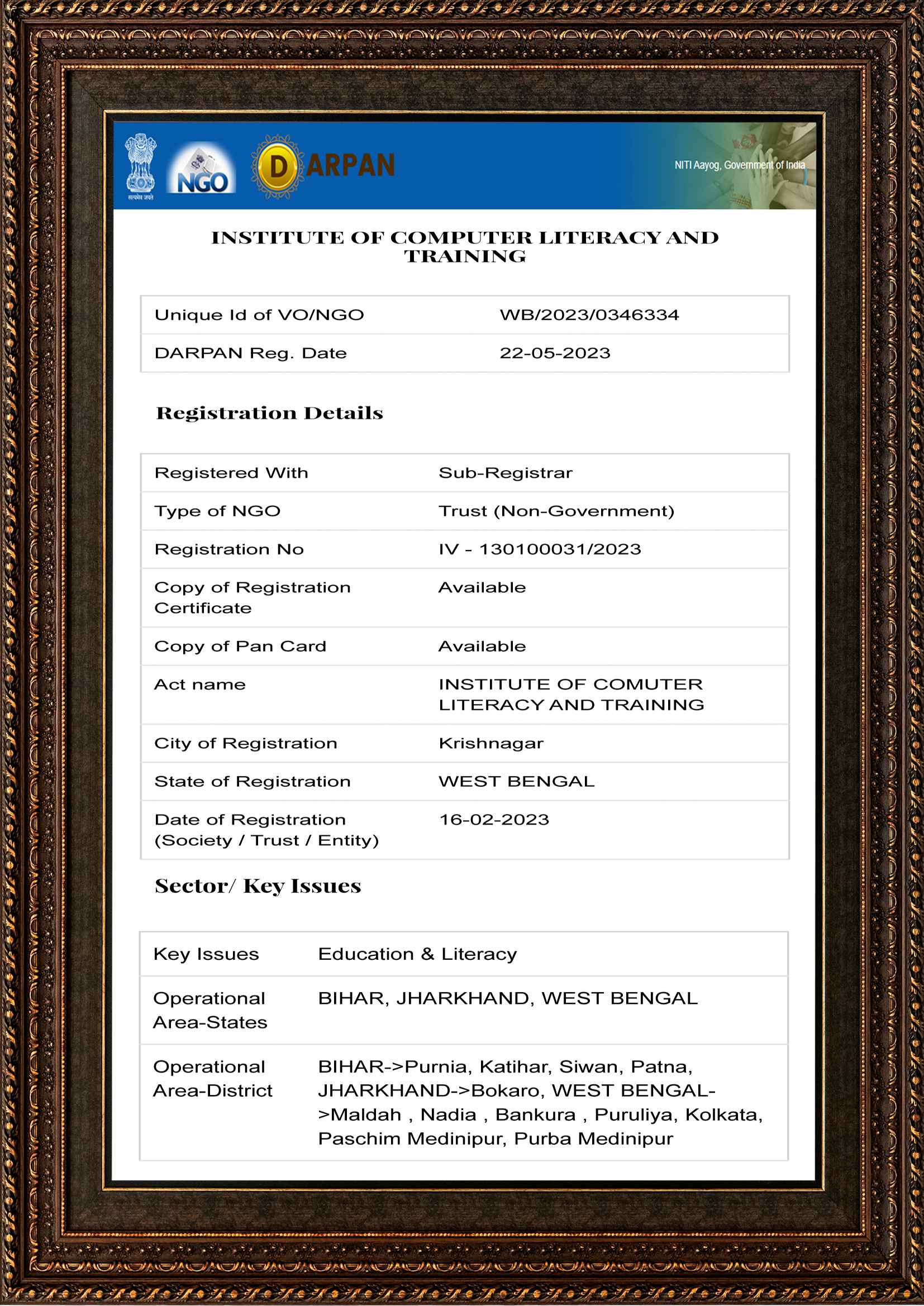 The Institute of Computer Literacy and Training is an autonomous institution registered under the Indian Public Trust Act, 1882 (Govt. of West Bengal).